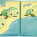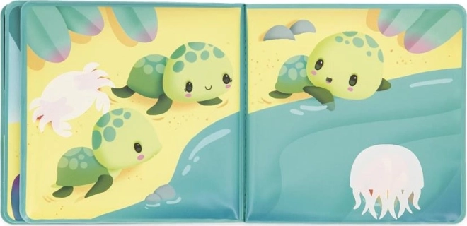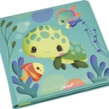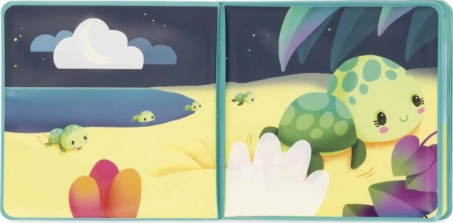 Amusez votre enfant dans le bain avec le livre d’images souple Janod sur les tortues. Cet ouvrage original propose une aventure en huit pages qui transporte les enfants dans un univers marin enchanteur. Regardez les animaux magiques apparaître lorsque le livre est immergé, puis retourner dans leur cachette une fois sec.