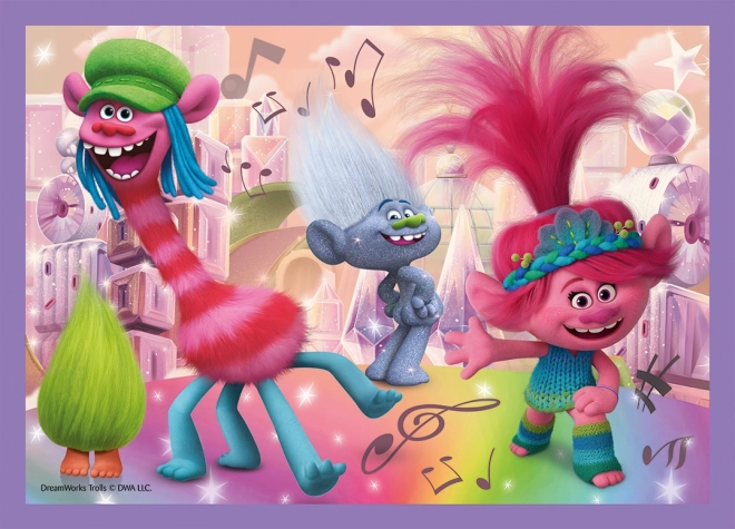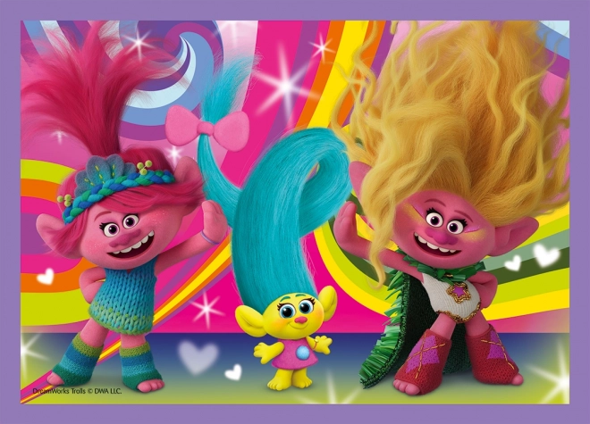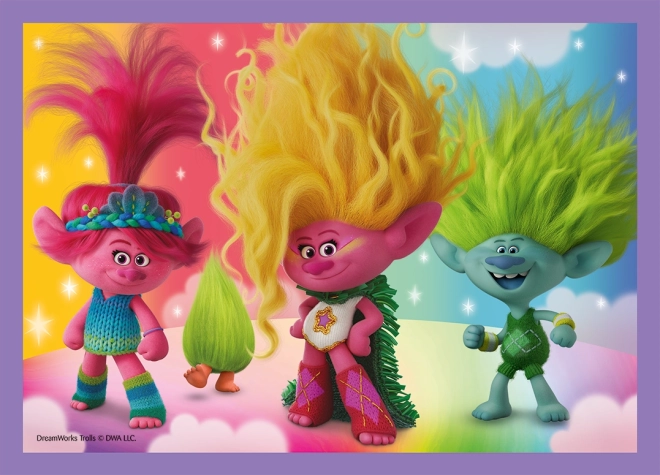 Découvrez le plaisir d’assembler des puzzles avec les héros colorés du film Trolls. Ce set 4-en-1 réunit quatre images distinctes avec un nombre de pièces croissant, idéal pour les enfants qui apprennent et perfectionnent progressivement leurs compétences. Chaque puzzle assemblé mesure environ 28,5 × 20,5 cm.