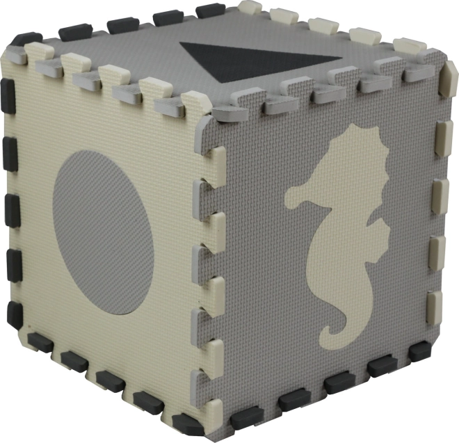 Tapis puzzle en mousse gris crème Animaux et formes 28 × 28 cm