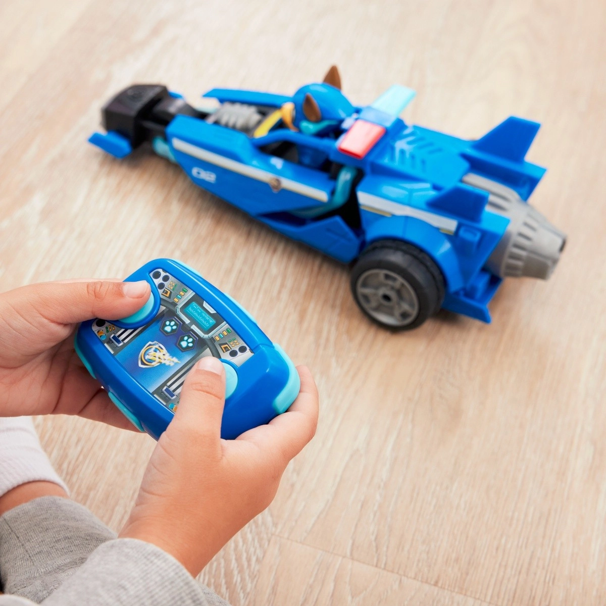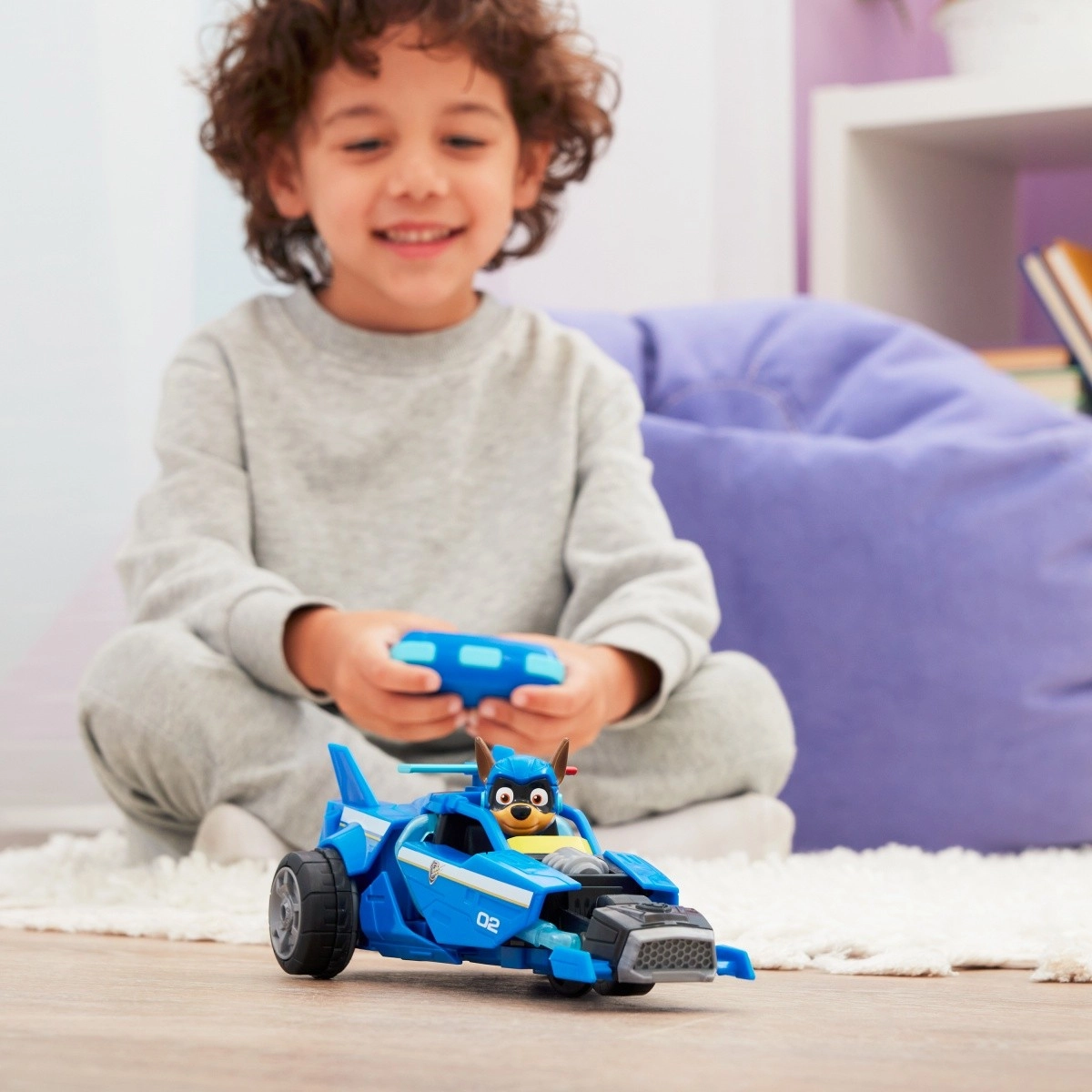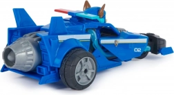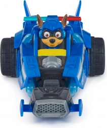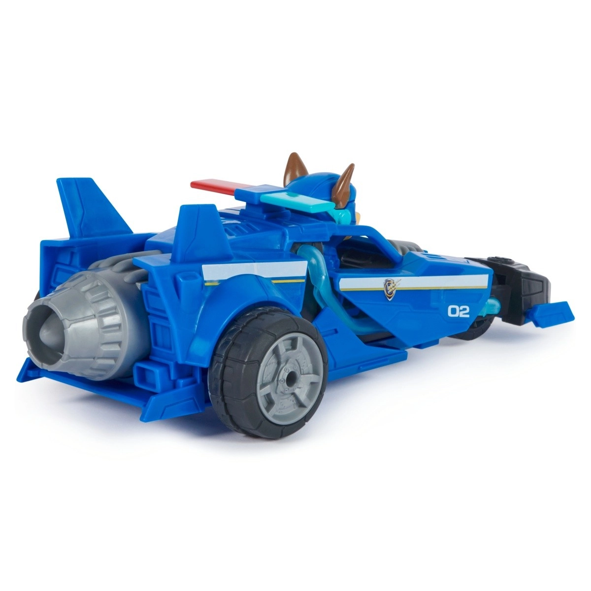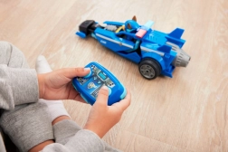 Voiture de police détaillée avec le numéro 02, des éléments aérodynamiques et la figurine de Chase – exactement comme dans Pat’ Patrouille : Le Super Film.