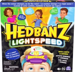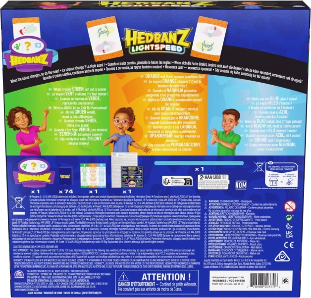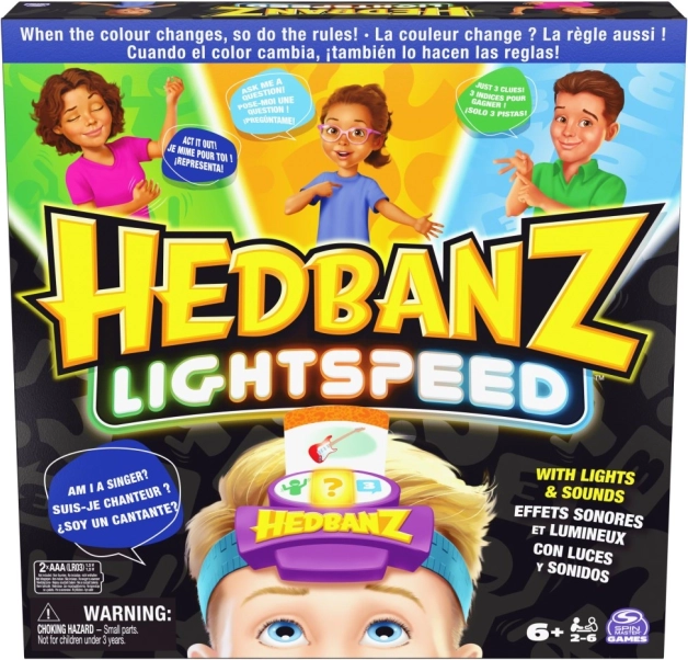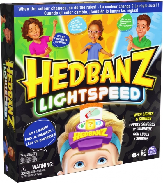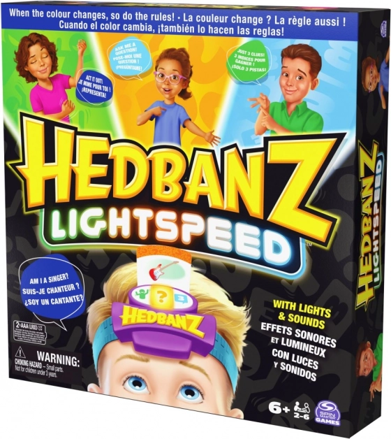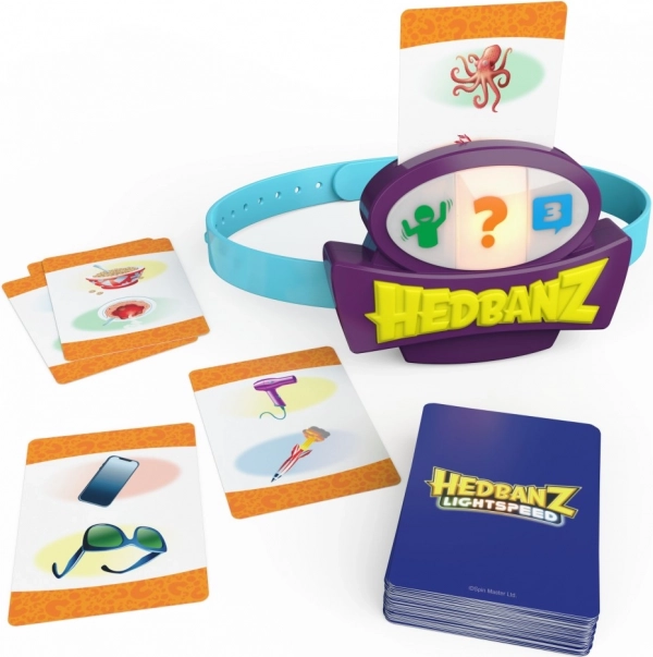 Profitez d'un jeu palpitant Hedbanz Lightspeed, où les règles changent constamment grâce au bandeau électronique dynamique avec trois couleurs. Imaginez une scène, répondez à la vitesse de la lumière ou utilisez trois indices en fonction de la couleur que le bandeau affiche.