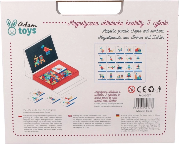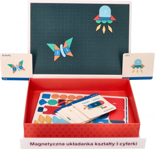 Découvrez un jouet éducatif astucieux qui développe la motricité fine, la pensée logique et l’imagination. Les enfants composent des figures avec des puzzles magnétiques — carrés, triangles, cercles, losanges et autres formes, de nombreuses pièces étant marquées des chiffres 1–9 pour les premiers pas en mathématiques. Le format compact en mallette avec poignée est idéal pour s’amuser à la maison et en déplacement.