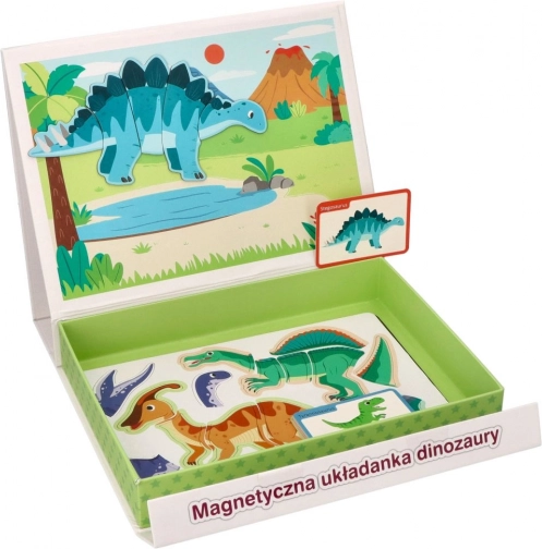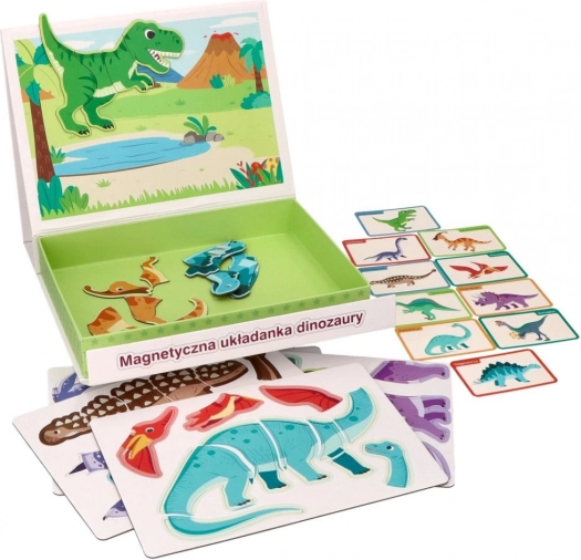 Découvrez le puzzle magnétique avec dinosaures dans une boîte pliante avec poignée pratique, qui offre aux enfants un apprentissage créatif et ludique à la maison comme en voyage. L’ensemble comprend 51 pièces magnétiques et 10 cartes colorées représentant des espèces de dinosaures – idéal pour développer la motricité fine, la coordination œil-main et la pensée logique.