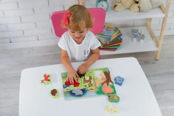 Grâce à sa surface laquée résistante et à ses bords lisses, ce jouet convient à un usage quotidien. Il favorise la coordination œil–main, la patience et la concentration, tout en permettant aux enfants de découvrir naturellement les animaux de la forêt.