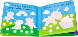Chacune des 6 pages propose des scènes simples avec une licorne, qui stimulent l’imagination et les premiers récits.
