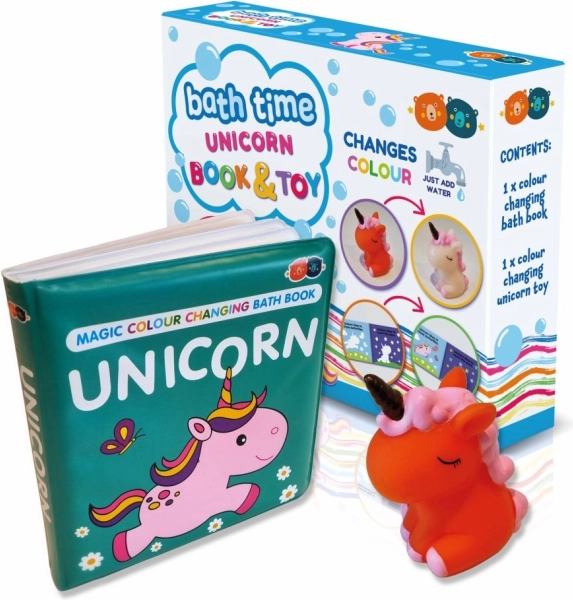 Ce set de bain ludique allie amusement et apprentissage. Le livre imperméable avec licorne surprend par son effet magique – les illustrations changent immédiatement de couleur lorsqu’elles sont mouillées. Ajoutez la figurine licorne souple à saisir, et votre enfant aura hâte de prendre son bain chaque jour.
