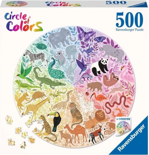 RAVENSBURGER Puzzle rond Cercle des couleurs : Animaux 500 pièces
