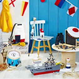 Créé en collaboration avec la Marine nationale française – des illustrations originales de marins et de motifs marins stimulent l’imagination et le jeu.