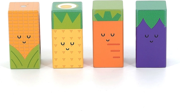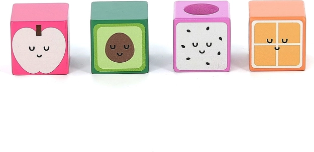 Cet ensemble original de 11 cubes sonores en bois aux motifs fruités joyeux offre de nombreuses stimulations à la découverte. Chaque cube est unique – en le secouant ou en le tapotant, il produit des sons différents qui favorisent le développement sensoriel et la curiosité. Grâce à leur format compact, les cubes tiennent parfaitement dans les petites mains et sont idéaux pour les premières constructions, le tri et le jeu libre.
