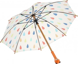 La poignée en bois laqué en forme d’ours est agréable en main et transforme chaque averse en moment de plaisir.