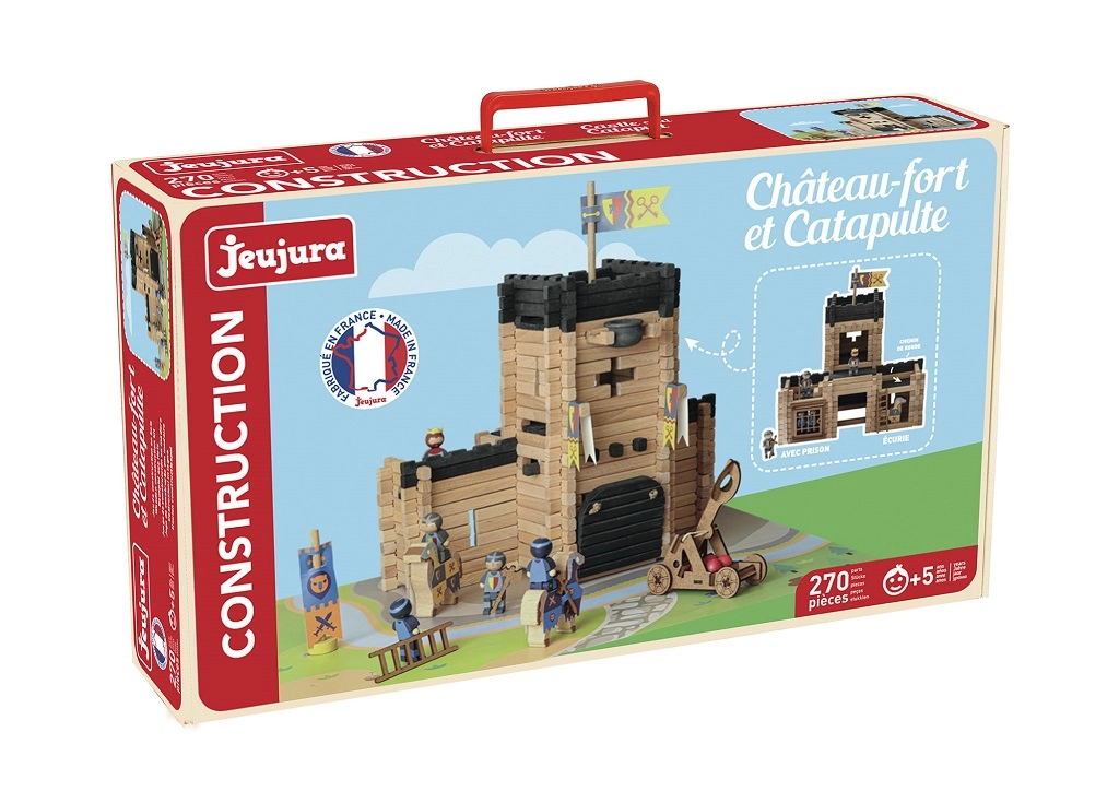Construisez votre propre royaume médiéval avec la construction en bois JEUJURA. Un ensemble de 270 pièces en bois massif permet aux enfants de créer un grand château avec pont-levis, prison, chemins de ronde, drapeaux et une catapulte fonctionnelle. Fabrication française traditionnelle, peintures à base d’eau sûres et emballage pratique dans une valisette en carton font de ce coffret un cadeau idéal pour les petits bâtisseurs dès 5 ans.