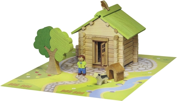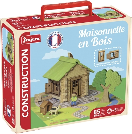 Découvrez le charme des jeux de construction en bois classiques JEUJURA. Les pièces en hêtre et en pin s’emboîtent avec précision et permettent aux enfants de construire des maisons réalistes avec toit, porte, fenêtres et volets. Une base solide est incluse pour jouer et exposer en toute stabilité.