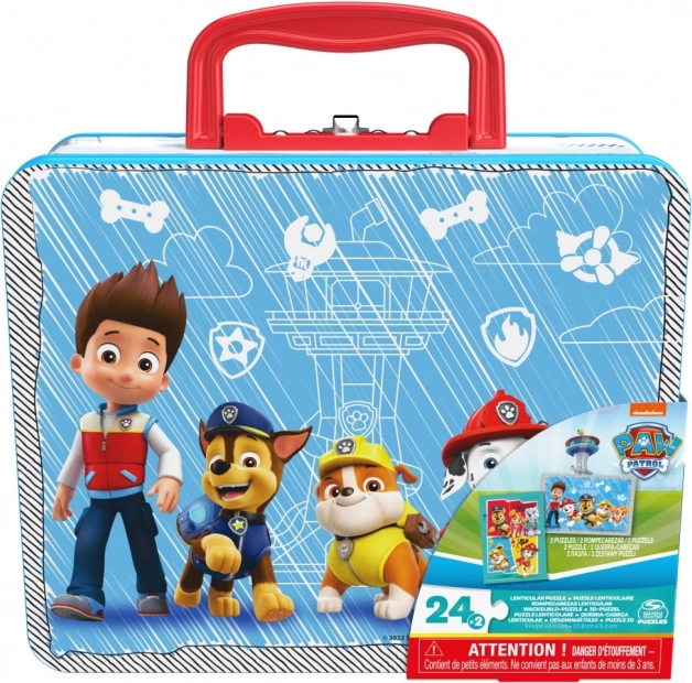 Faites plaisir aux enfants avec un double pack de puzzles à l’effigie de la PAT' PATROUILLE dans une robuste boîte métallique. Deux puzzles de 24 pièces offrent un superbe effet 3D, un assemblage facile pour les petites mains et des personnages favoris comme Chase, Skye, Marshall, Rubble, Everest et Ryder.