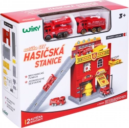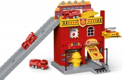 - Caserne de pompiers, 2 voitures de pompiers, autocollants, guide illustré