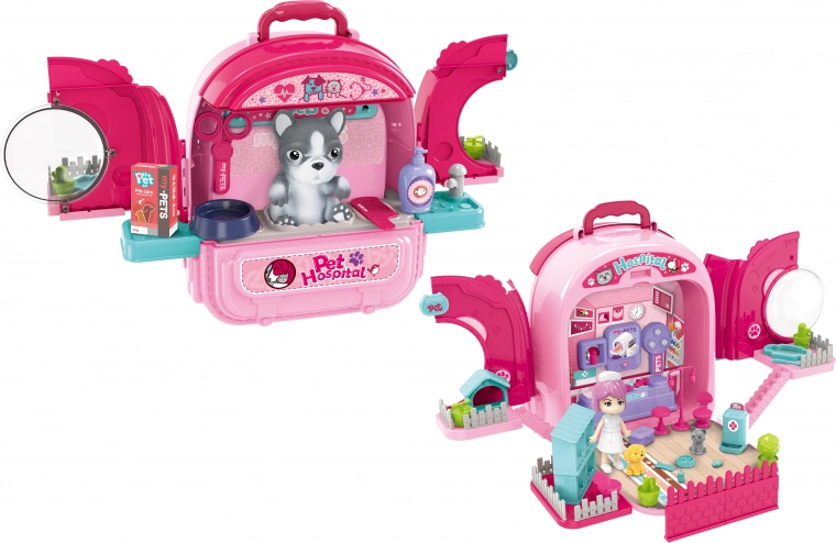 L’hôpital pour animaux portable permet aux enfants de soigner leur peluche préférée partout. Les différents accessoires offrent une expérience réaliste.