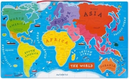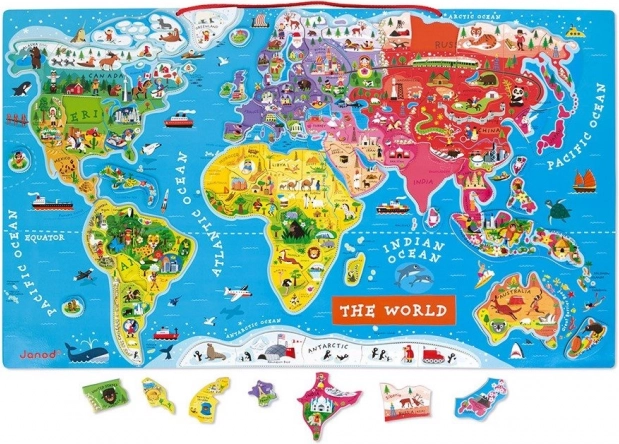 Cette belle carte du monde magnétique mesure 77 x 46 x 1 cm et contient 92 pièces de puzzle en bois. Chaque pièce représente une région ou un pays, indique le nom de la capitale et comporte une illustration caractérisant l’endroit, comme des bâtiments emblématiques, des monuments, des animaux et des plantes. La carte est en anglais et peut être accrochée au mur, ce qui en fait un accessoire unique pour la chambre des enfants.