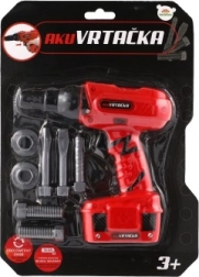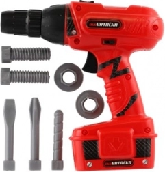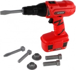 Perceuse à batterie pour les enfants, qui garantira beaucoup de plaisir lors de jeux de bricolage à la maison. Comprend des embouts interchangeables et émet des sons de perçage réalistes.