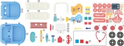 - Contient divers outils médicaux permettant aux enfants de simuler de véritables interventions médicales.