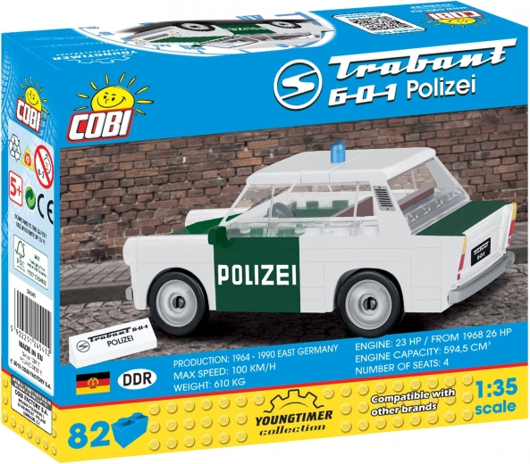 - Modèle fidèle à l’échelle 1:35 avec les formes caractéristiques du TRABANT 601 POLIZEI