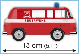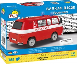 Le Barkas B1000 était une camionnette et un minibus emblématiques produits entre 1961 et 1991 en ex-RDA. La variante Feuerwehr était adaptée aux besoins des brigades de sapeurs-pompiers. Ce set COBI restitue fidèlement le caractère du véhicule historique à l’échelle 1:35 et, grâce à des impressions de haute qualité, il est superbe même sans autocollants.