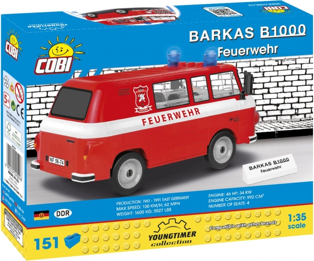 Construisez le légendaire minibus est-allemand Barkas B1000 en version pompiers ! La boîte COBI avec 151 pièces à l’échelle 1:35 offre des détails fidèles, des impressions durables sans autocollants et des roues pivotantes. Un excellent choix pour les fans de youngtimers, le développement de la motricité et de la créativité des enfants, ainsi que comme modèle de collection.