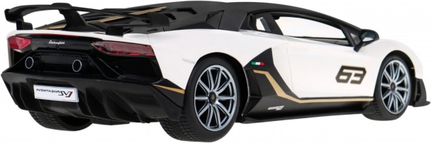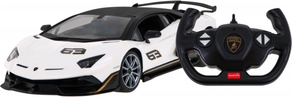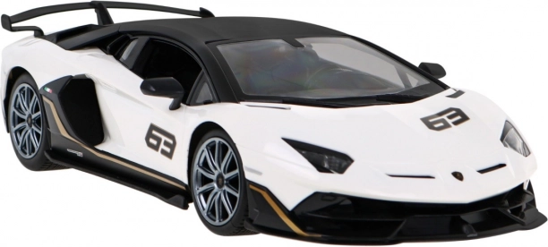 Modèle RC réaliste Lamborghini Aventador SVJ de la marque RASTAR à l’échelle 1:14, offrant une reproduction précise des détails, une conduite fluide dans toutes les directions et un contrôle stable en 2,4 GHz. Grâce aux phares LED, aux pneus en caoutchouc et à la suspension indépendante, il procure une excellente expérience de conduite pour les amateurs exigeants, petits et grands, de supercars.