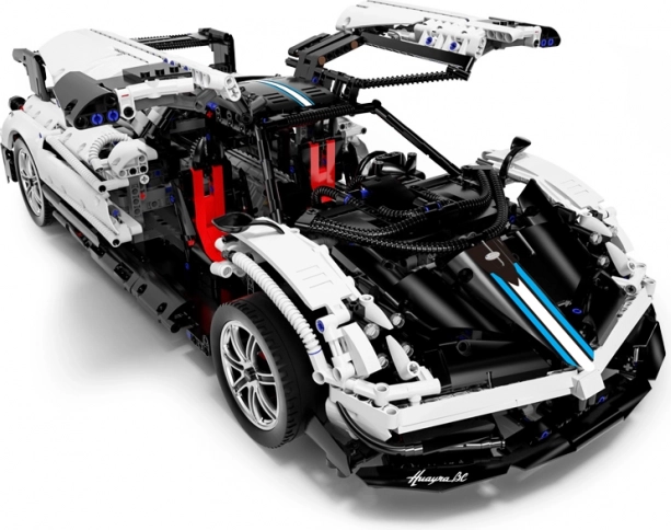 Maquette à assembler de la voiture de sport Pagani Huayra fabriquée en plastique ABS de haute qualité et dotée de détails saisissants. Ce modèle à l’échelle 1:8 offre une superbe expérience de construction avec 2896 pièces.