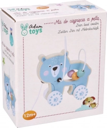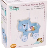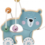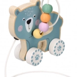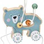 Le jouet en bois sur roulettes avec ourson attire l'attention et encourage l'enfant au mouvement.