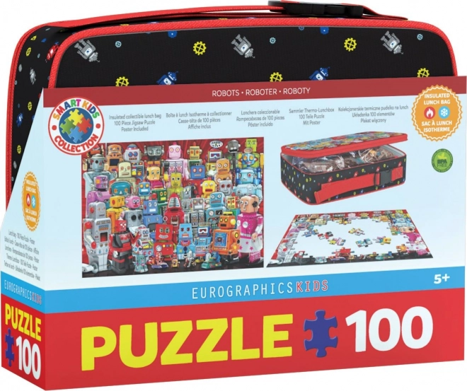 Découvrez le plaisir et la praticité en un seul produit. Ce puzzle au motif de robots colorés est rangé dans une boîte-repas isotherme de qualité avec fermeture éclair, qui devient après ouverture un accessoire utile pour l’école comme pour les sorties. Grâce au modèle séparé inclus, l’assemblage est simple et amusant pour les enfants comme pour les adultes.
