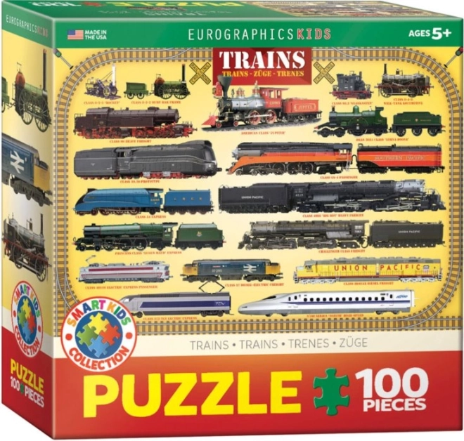 Découvrez un puzzle ludique et éducatif sur le thème des trains de la marque EUROGRAPHICS, idéal pour les enfants dès 5 ans. Ce puzzle de 100 pièces développe la motricité fine, la pensée logique et la patience. Les textes sur le puzzle sont en anglais et l’œuvre terminée mesure env. 48,3 × 33 cm.