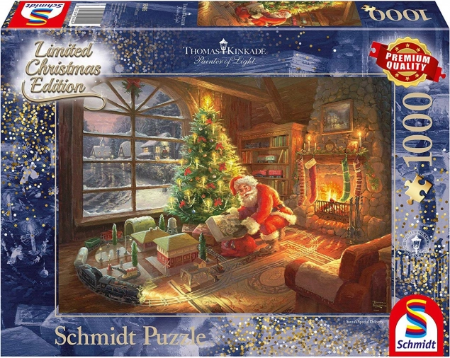 Plongez dans l’ambiance festive avec l’édition limitée du puzzle du maître de la lumière Thomas Kinkade. Ce puzzle 1000 pièces de la marque Schmidt séduit par le superbe motif de la hotte du Père Noël et l’ajustement précis des pièces pour un assemblage fluide.