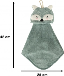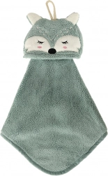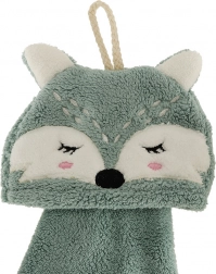 La serviette dispose d’une boucle d’accrochage pour une installation facile sur un crochet à la hauteur idéale. La petite poche avec renard permet de la plier et de l’emporter facilement à la maternelle, en visite ou en vacances.