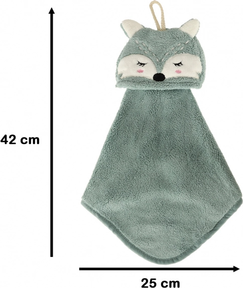 Adorable petite serviette pour enfants avec motif de renard bleu, idéale pour la salle de bain comme pour la maternelle. Grâce à ses dimensions compactes, elle tient parfaitement dans les petites mains et les enfants peuvent s’essuyer les mains tout seuls. Une boucle pratique permet de la suspendre à un crochet à portée de l’enfant, et la petite poche en forme de tête de renard facilite l’emballage pour les déplacements. La serviette est en matière douce et se lave en machine à 30 °C.