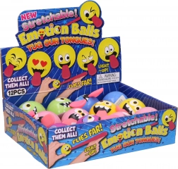 Amusante balle lumineuse avec un sourire et la langue tirée qui ravira enfants et adultes. Elle offre des effets lumineux, une langue extensible et un diamètre compact de 5,5 cm – idéal en main et pour se détendre.