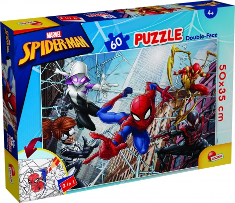 Profitez d’un moment ludique avec le puzzle recto-verso SPIDER-MAN de 60 pièces au format 50 × 35 cm. Assemblez l’illustration en couleur d’un côté et coloriez le motif au verso – idéal pour développer la créativité et la patience des enfants.
