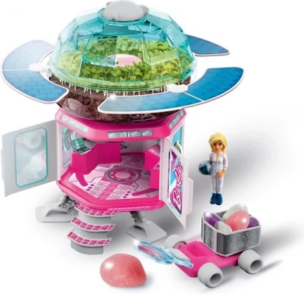 Ce coffret scientifique inspirant transporte les enfants dans l’univers des découvertes spatiales. Ils construiront une base spéciale pour des expériences sur les plantes et l’analyse des sols, assembleront un mini rover pour explorer des planètes inconnues et décoreront les modèles à l’aide d’autocollants. Le set comprend également une petite poupée astronaute Barbie, qui accompagne les enfants dans leurs missions de découverte.
