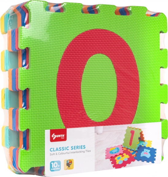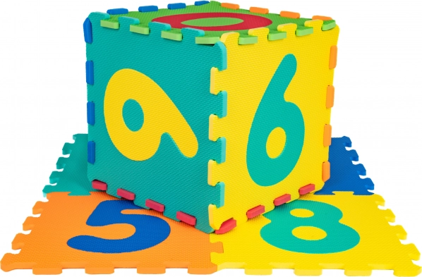 Le tapis éducatif en mousse avec chiffres allie jeu en sécurité et apprentissage. Chaque pièce d’environ 32 × 32 × 1 cm comporte des chiffres amovibles, grâce auxquels les enfants exercent leur motricité fine, la reconnaissance des formes et des couleurs ainsi que les premiers calculs. Avec 10 pièces, vous créez facilement une surface de jeu ou les reliez en structures 3D (p. ex. cubes).