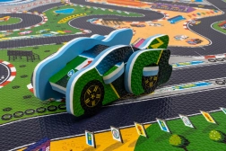 Comprend 6 pièces pour construire une petite voiture en mousse légère – sûre, ludique et prête à foncer sur la piste.