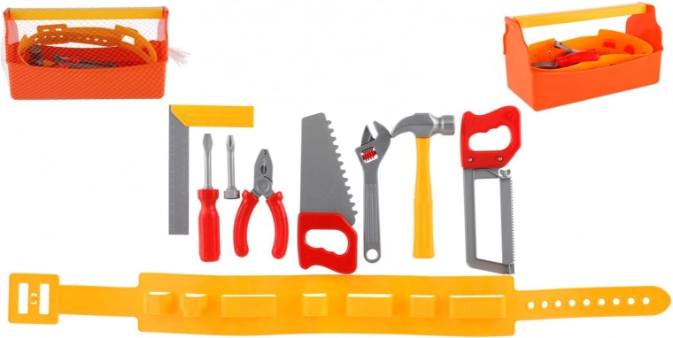Pratique set d’outils pour enfants dans une caisse orange avec poignée et ceinture porte-outils, qui ravira tous les petits bricoleurs. Il comprend 9 pièces légères en plastique qui développent la motricité fine, l’imagination et la pensée technique. La boîte assure un transport facile et un rangement ordonné de tous les outils. Convient aux enfants à partir de 3 ans.
