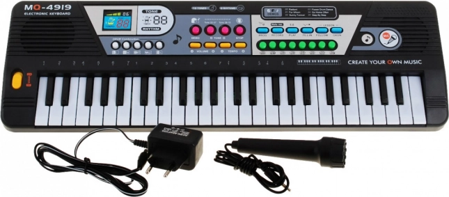 Clavier ludique et facile à utiliser pour enfants dès 5 ans, doté de 49 touches, d’un microphone intégré, d’une fonction enregistrement et d’un large choix de sons, rythmes et mélodies démo. Alimentation sur secteur ou piles, idéal à la maison comme en voyage.