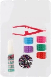 Un kit pratique avec bagues, colle, pince et strass colorés – les enfants peuvent commencer à créer dès l’ouverture.
