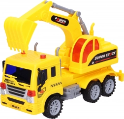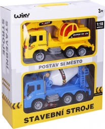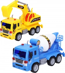 Véhicules de chantier 23 cm avec pelleteuse, bétonnière et panneaux de signalisation. Convient à tous les petits constructeurs.