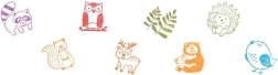 Chouette, hérisson, ours, raton laveur, écureuil, oiseau et bien d’autres – idéaux pour décorer des cahiers, des cartes de vœux et des projets d’enfants.