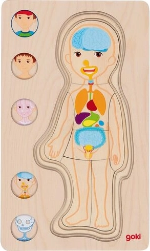 goki puzzle anatomique en bois corps humain – garçon, 5 couches