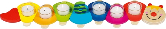 La chenille d’anniversaire Kamila de la marque GOKI est une décoration originale que vous utiliserez d’année en année. Les éléments individuels se combinent facilement en différentes formes, vous ajoutez le chiffre de l’âge du moment et placez des bougies chauffe-plat dans les photophores en verre fournis. Grâce au bois massif de qualité et aux peintures sans danger pour la santé, elle est sûre pour une utilisation en intérieur.