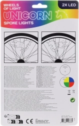 Augmentez votre visibilité et ajoutez une touche de magie à vos trajets à vélo grâce à ces élégantes lumières LED pour vélo à motif licorne. L’ensemble comprend deux éléments lumineux qui se fixent facilement aux rayons de votre vélo.