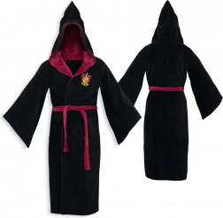 Peignoir noir avec doublure rouge, capuche et écusson de Gryffondor pour un look de petit sorcier authentique.