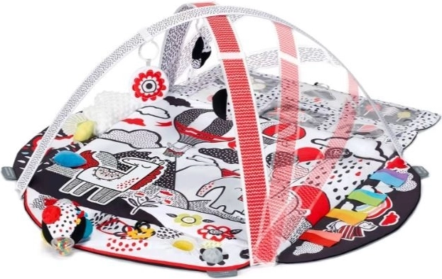 Découvrez 4SMART – un tapis sensoriel à forts contrastes qui soutient le développement des compétences de votre enfant à travers le jeu. Au cours des premiers mois, les bébés perçoivent surtout les couleurs contrastées et vives. Le tapis 4SMART a été conçu pour attirer l’attention des tout-petits grâce à ce style et les inciter à l’exploration. C’est un tapis sensoriel exceptionnel, divisé en 4 zones qui développent la vue, l’ouïe, le toucher et la concentration de l’enfant dès les premiers jours. 4SMART encourage votre bébé à toucher, s’étirer, bouger et jouer. Le tapis est doux et sûr, et les éléments inclus peuvent être emportés en promenade – par exemple les cartes contrastées ou la grande balle sensorielle incluse. Ce tapis est un véritable centre d’opérations pour votre enfant.