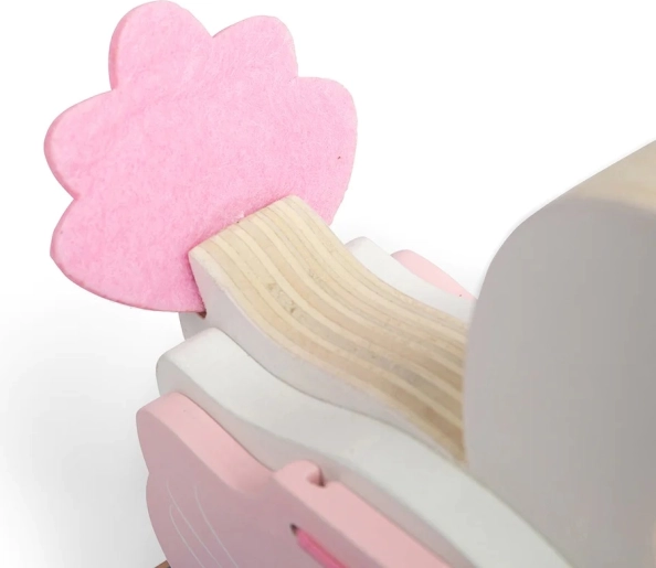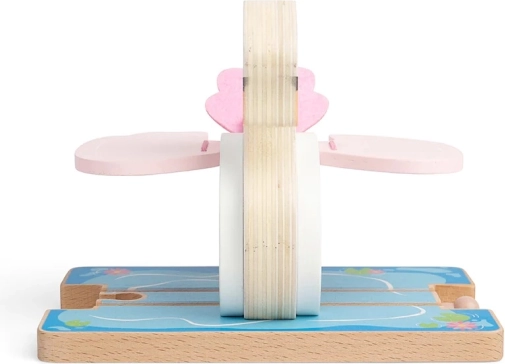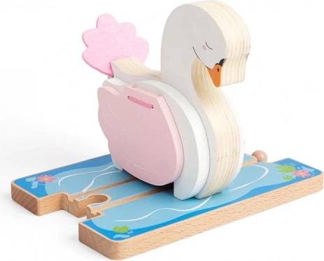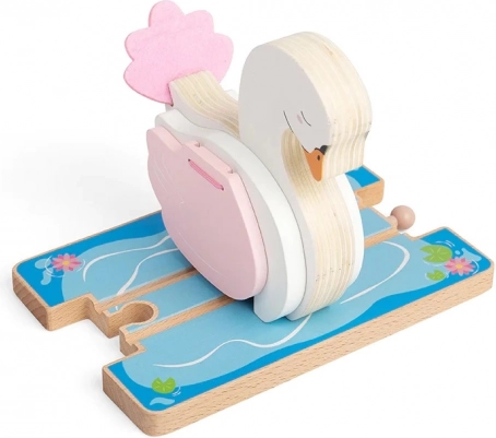 Relevez les ailes roses du cygne pour le transformer en tunnel. Les enfants adoreront cet élément mécanique simple mais enchanté qui anime chaque trajet.