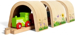 Ce tunnel universel pour trains en bois transforme facilement n’importe quelle voie. Vous pouvez l’utiliser comme simple passage droit avec retournement à 180° ou combiner plusieurs pièces pour créer un arc fluide – idéal aussi pour les longues courbes. Grâce à sa surface lisse et à ses bords arrondis, il est sûr et agréable au toucher.